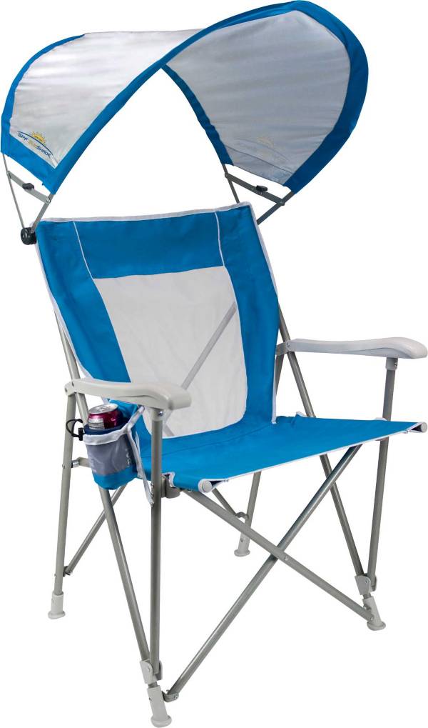 The gci sunshade comfort pro chair is easy to use, folding, with an adjustable sunshade, soft armrests, quality craftsmanship & a great price tag. To maximize sun protection, the shade features upf 50 fabric and a large bowed shape. The spf sunshade rotates a full 270 degrees front to back and can collapse flat. Features our new spf sunshade an adjustable shade that rotates front to back and can collapse flat when not in use. 1977 red/blue steel quad lawn chair.
